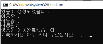 Console.WriteLine("영웅이 공격을 완료했습니다.\n");