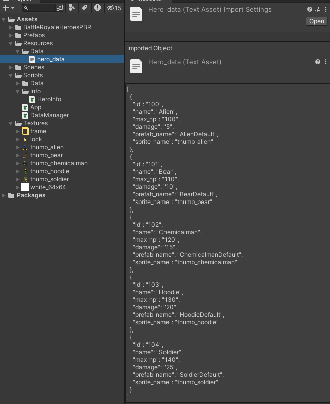 HeroData[] heroDatas = JsonConvert.DeserializeObject<HeroData[]>(asset.text);