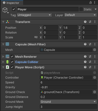 isGrounded = Physics.CheckSphere(groundCheck.position, groundDistance, groundMask);